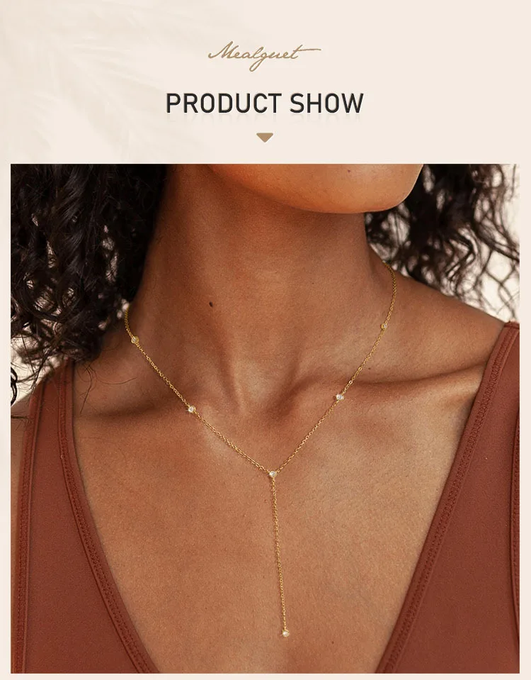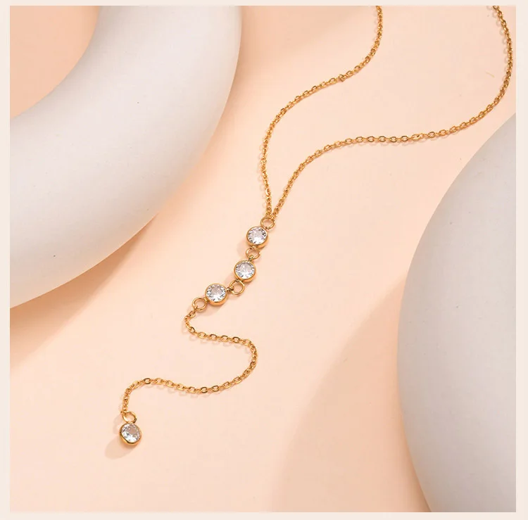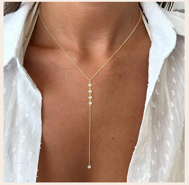 Y-Shaped Pendant Necklace Trendy Layered Cz Beaded Chain Drop Necklaces