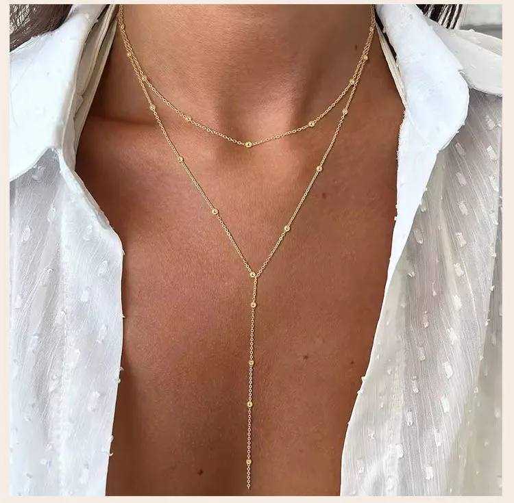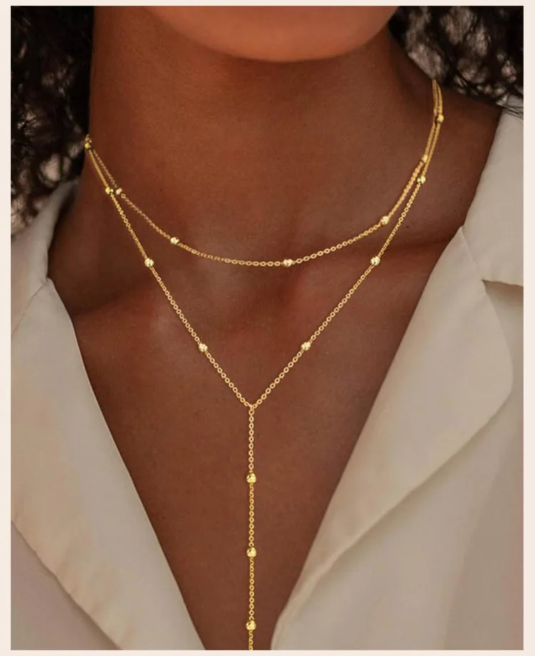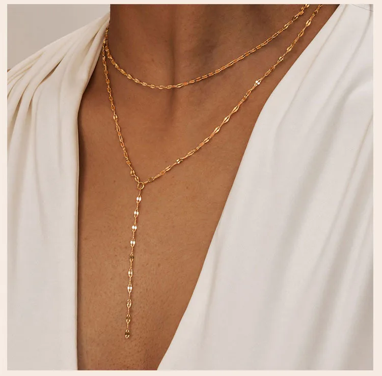 18k Gold Plated Y Lariat Necklace for Women, Laryerd Multilayer Long Chain Drop Necklace, Stainless Steel Aesthetics Jewelry