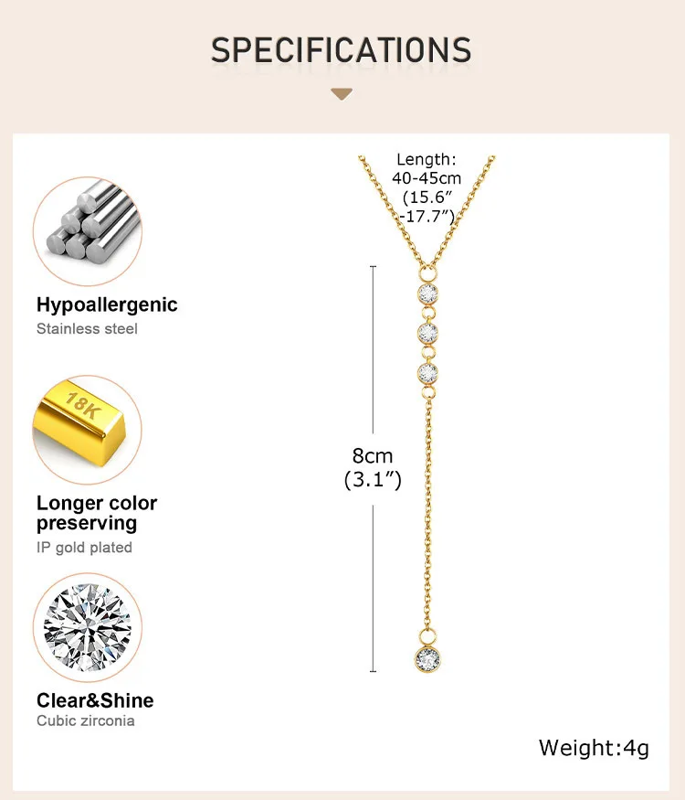 18K gold plated to ensure the chain keeps tarnish-free, nickel free, lead-free, and hypoallergenic for a long time.