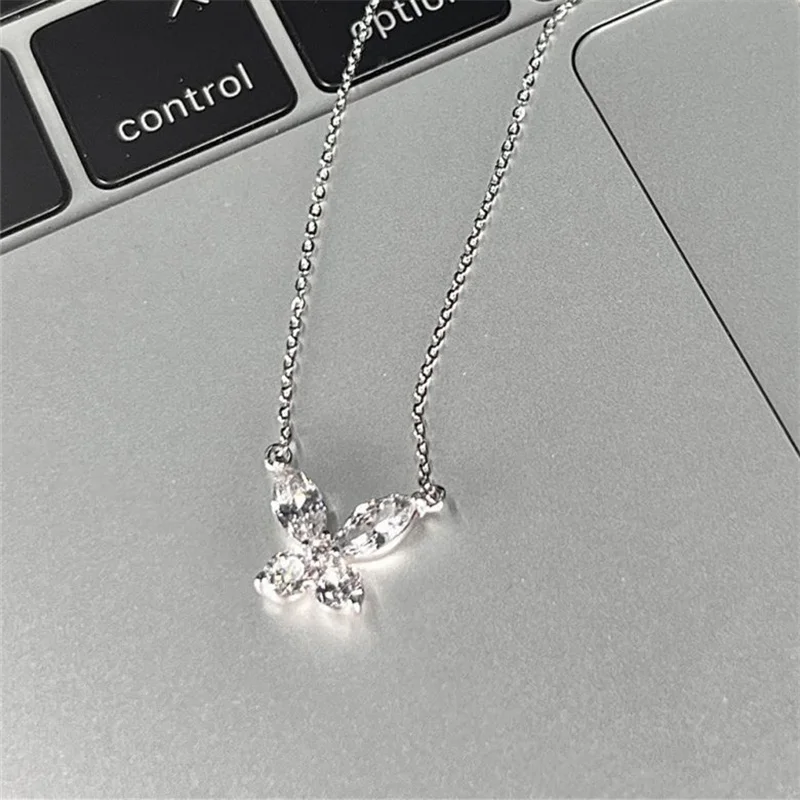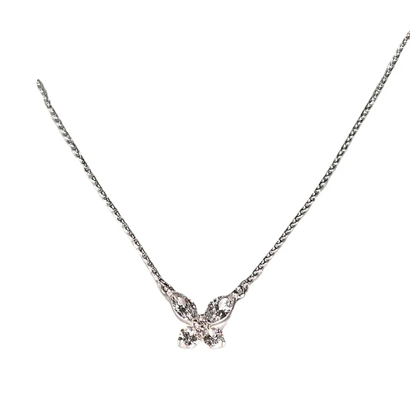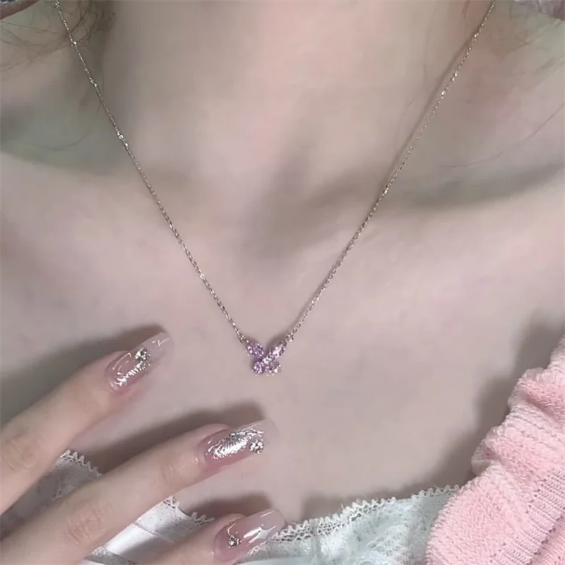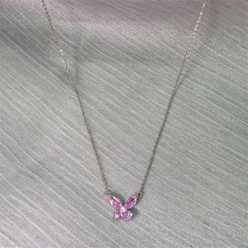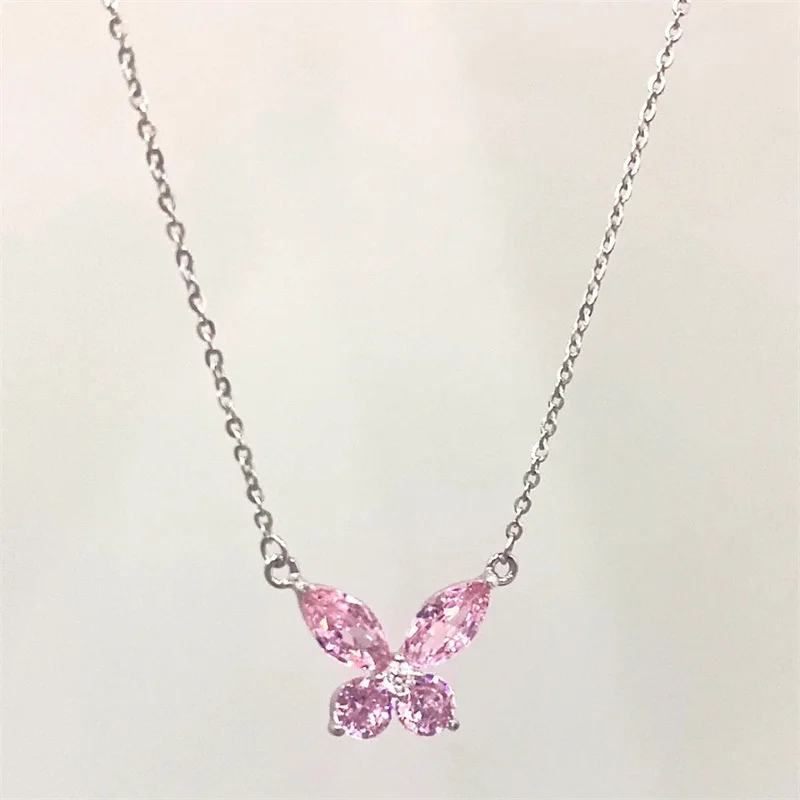 Elegant butterfly necklace featuring a delicate pink crystal design.